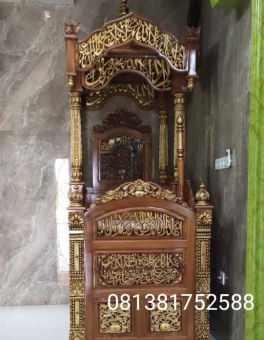 Mimbar Masjid Mewah Jati Jepara Pintu Samping Tiang Ukiran 100x150x270cm